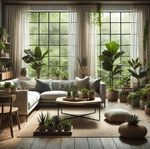 - Indoor Plants: Include an array of INDOOR PLANTS, including tall fiddle leaf figs to small succulents.