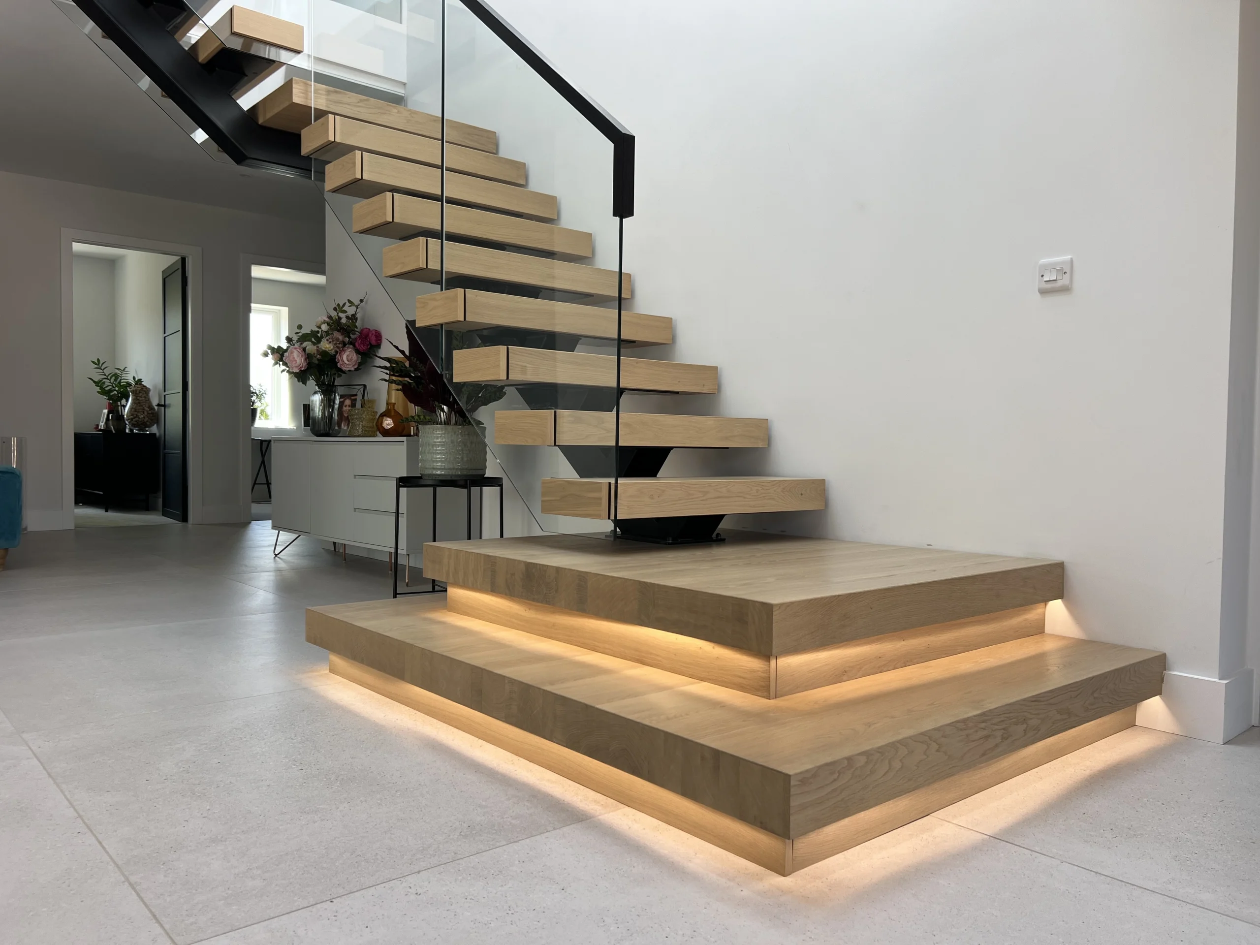 | Bespoke floating staircase with LED | From £8,500 | Under-tread or nosing-recessed LED included |
